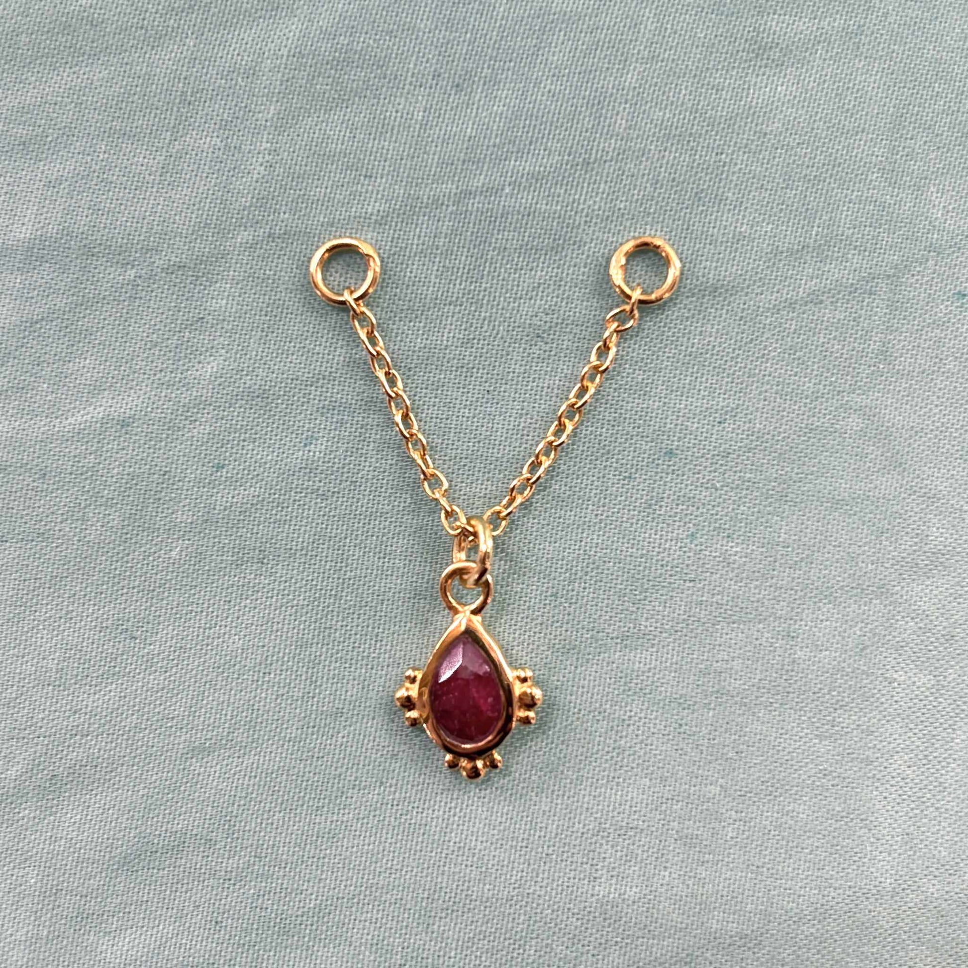 Chaine d'oreille en Argent 925 Plaqué Or 3 microns ornée d'un pendentif "Bindi" en Silimanite rose . Ce petit bindi crée et dessiné par nos soins donnent une petite touche indienne à vos oreilles .