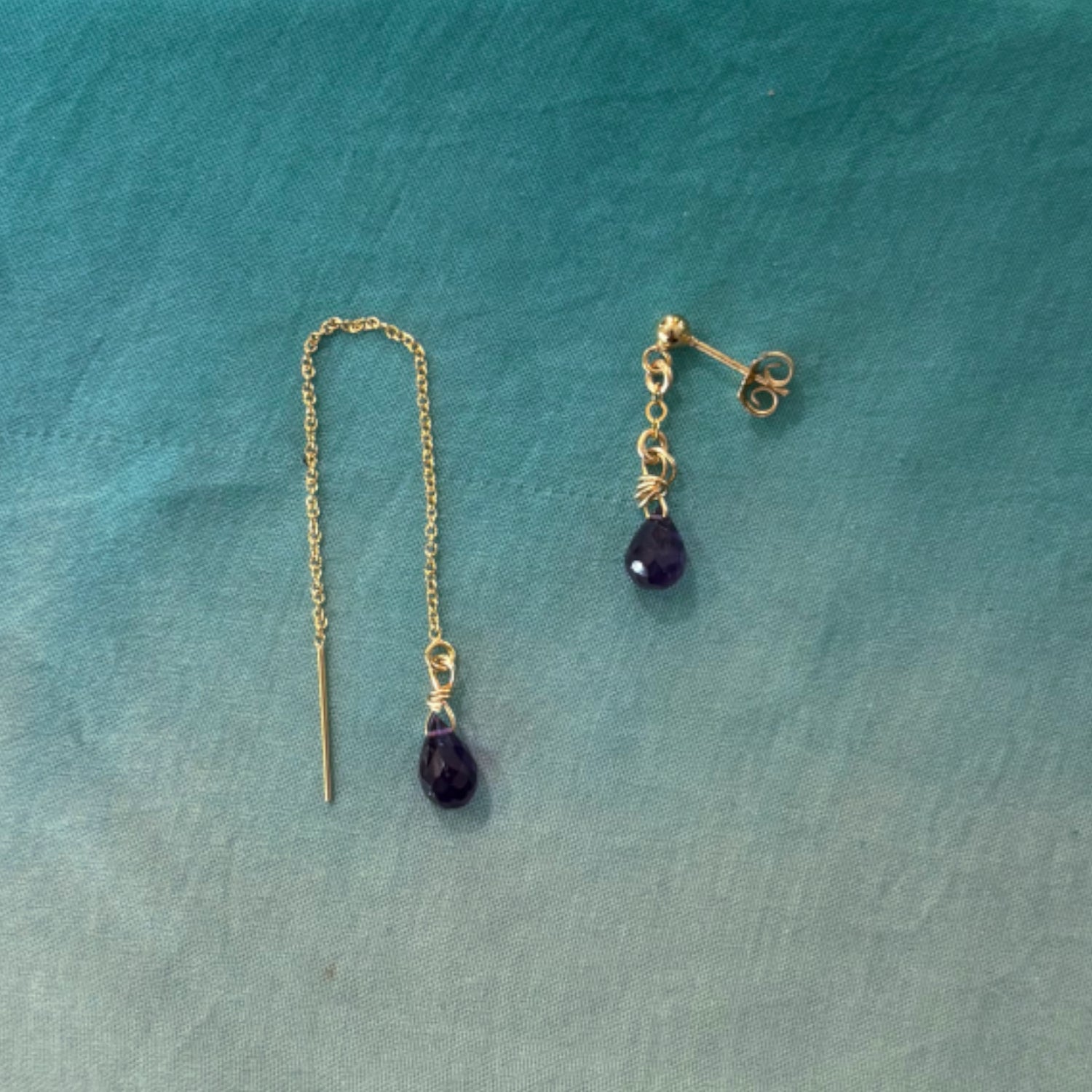 Et d une boucle d 'oreille composée d'un clou avec une goutte en amethyste